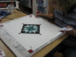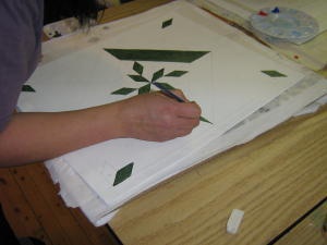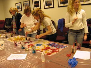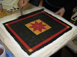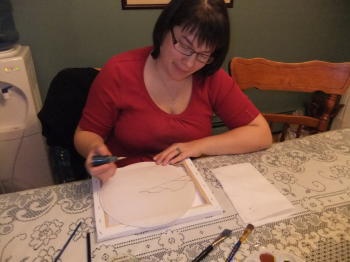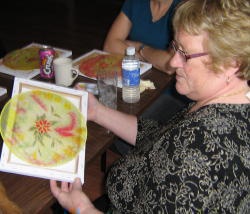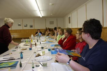 4 mat hookers took up the paint brush to learn the art of floor cloth painting at a one
